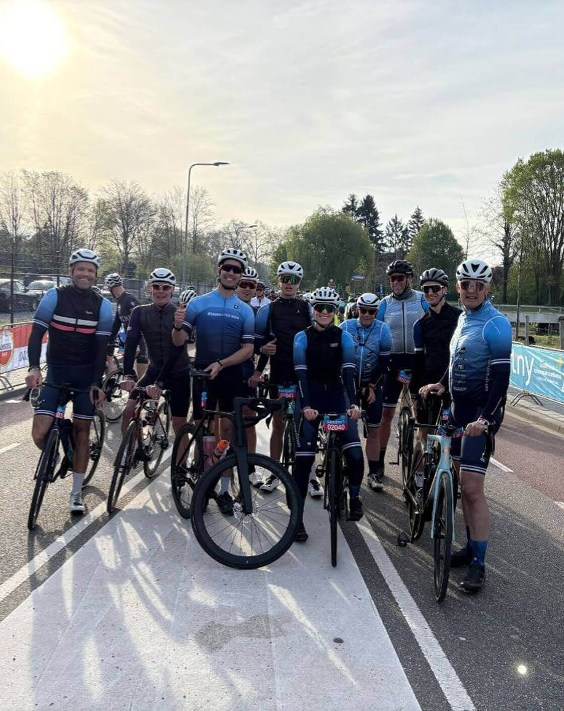 Onze collega’s lieten zien dat ze niet alleen sterk zijn in hun werk, maar ook op de fiets. In hun blauwe fietskleding reden ze samen over de heuvels, langs dorpjes en over smalle wegen. Onderweg werd er veel gelachen, aangemoedigd en gezweet. Maar vooral genoten!